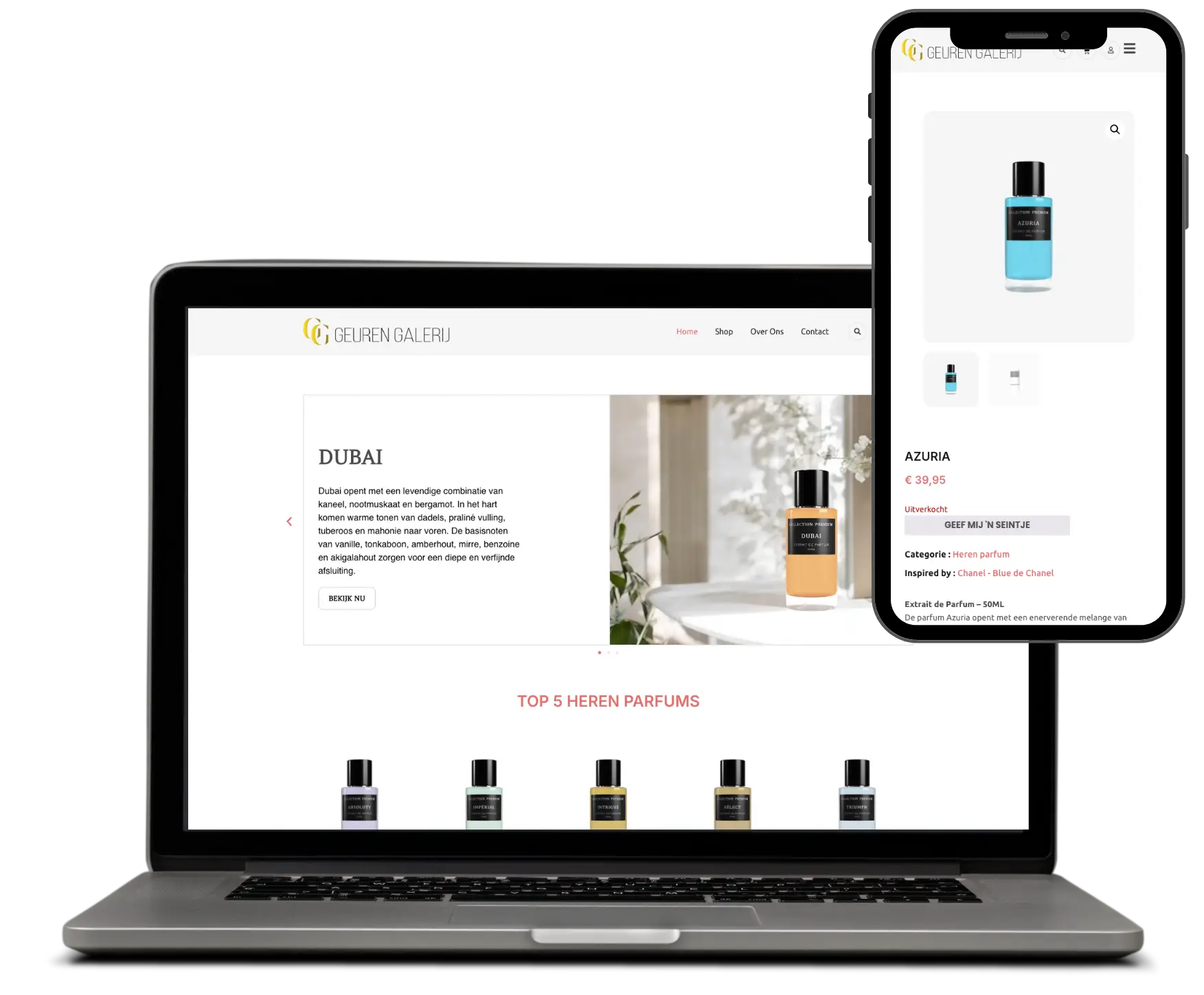 Voor Geuren Galerij hebben we een stijlvolle en gebruiksvriendelijke webshop ontwikkeld, waar klanten moeiteloos exclusieve parfums kunnen ontdekken en bestellen.